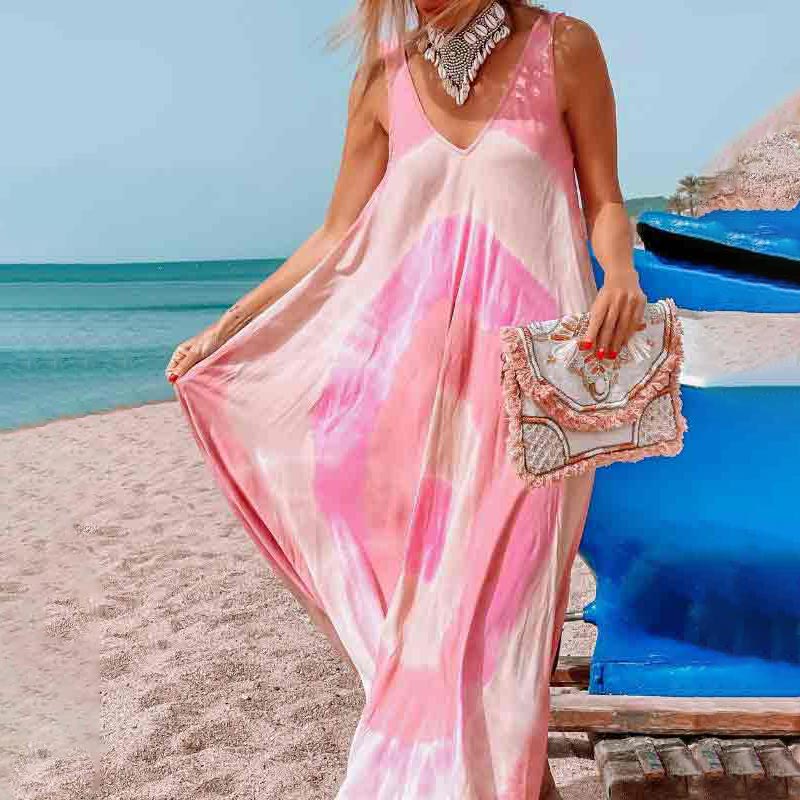 Casual V-Neck Loose Tie-Dye Sleeveless Maxi Dress