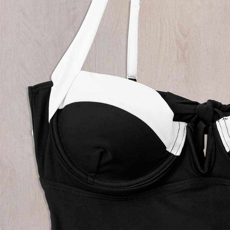 Color-blocked One-piece High Stretchy Swimsuit Sexy Lace-up Swimwear