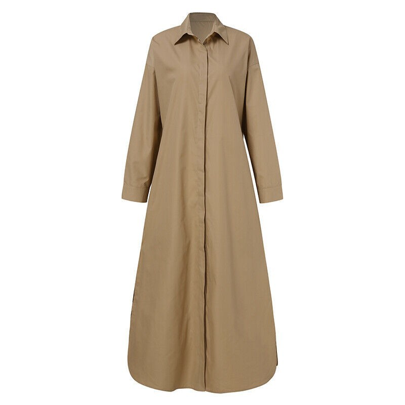Elegant Long Sleeve Lapel Shirt Dress Single Breasted Cardigan Dress