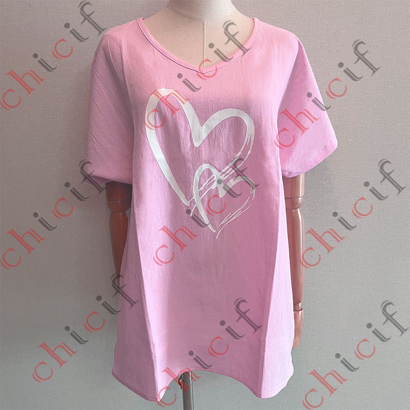 Heart Printed V-neck Casual Loose Short Sleeve T-shirt