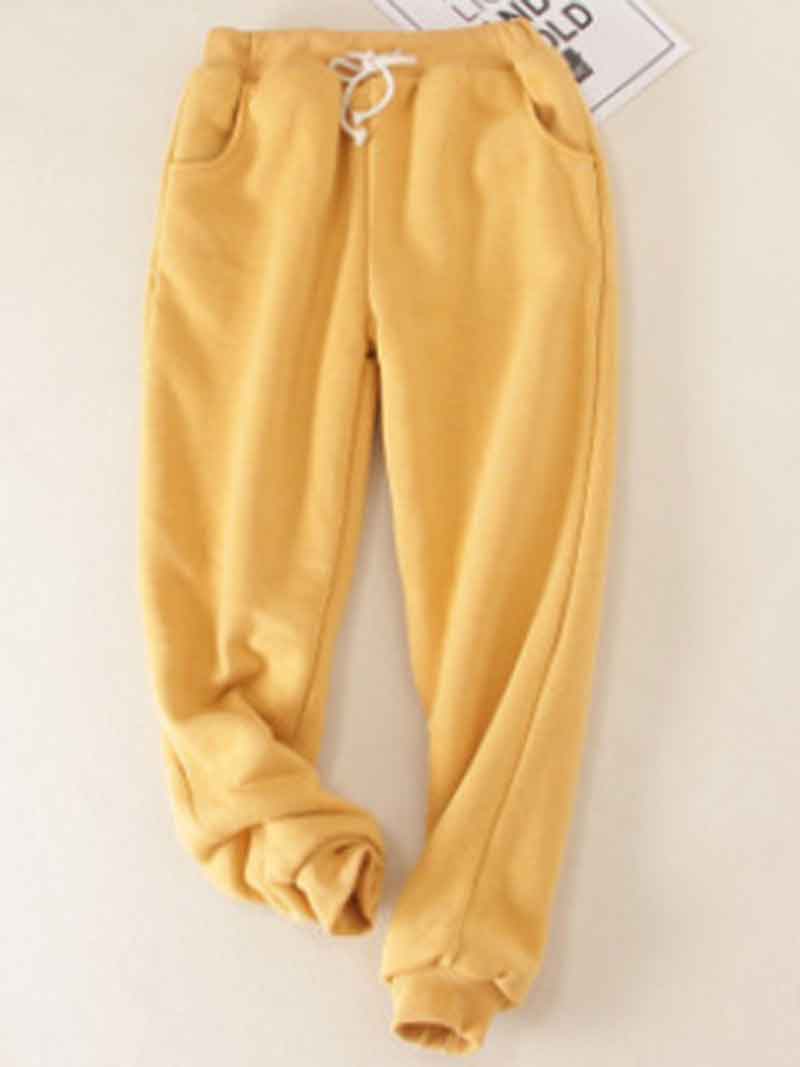 Solid Color Thickened Fleece Warm Autumn Winter Loose Sweatpants