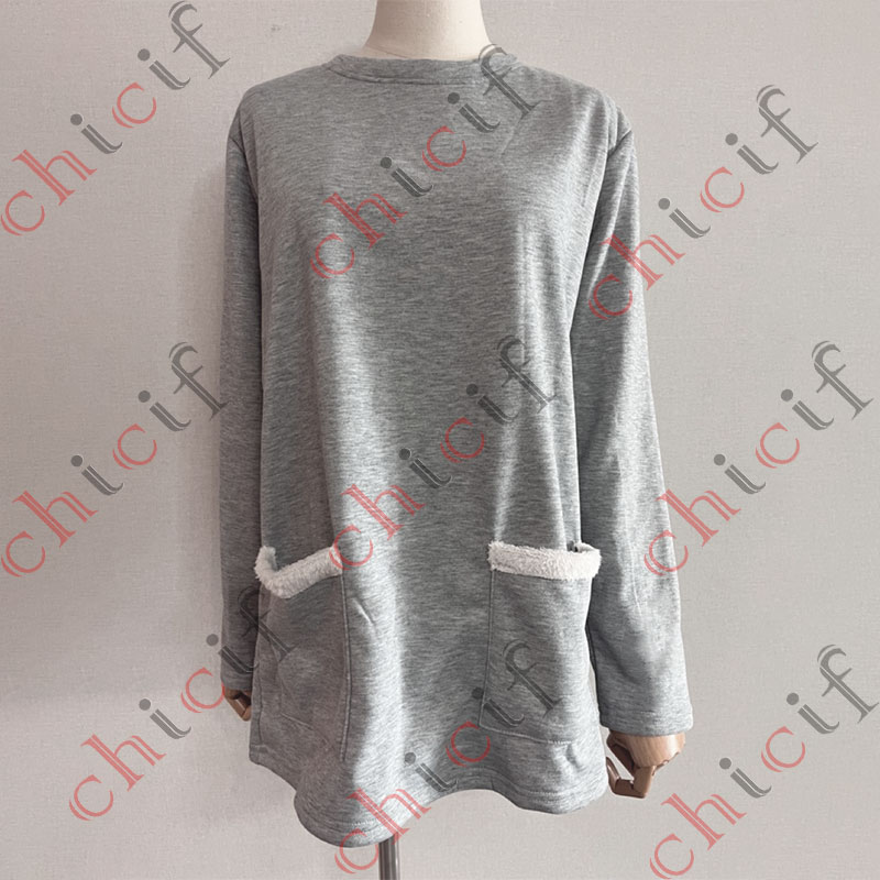 Solid Color Thickened Fleece Warm Autumn Winter Pockets Sweatshirt