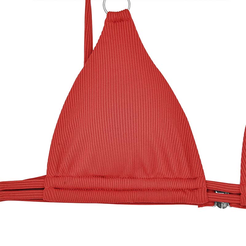 Stretchy Ribbed Sexy Lace-up Bikini Solid Two-piece Swimsuit