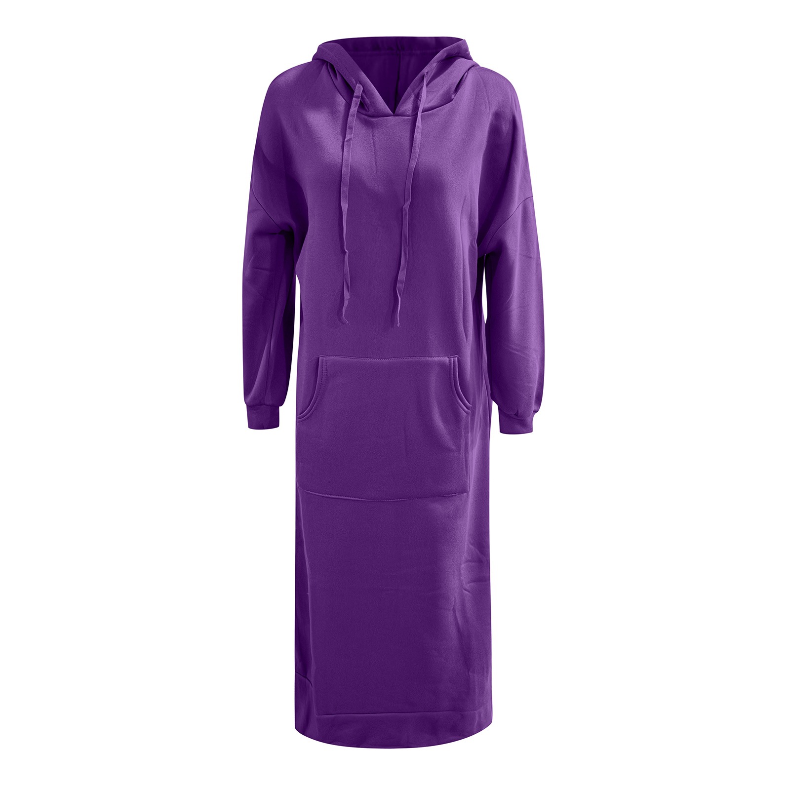 Warm Thickened Fleece Sweater Dress Autumn Winter Hooded Pocket Dress